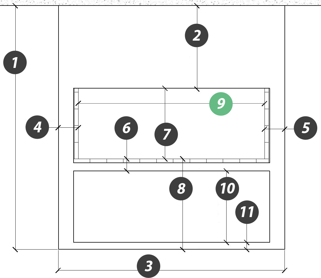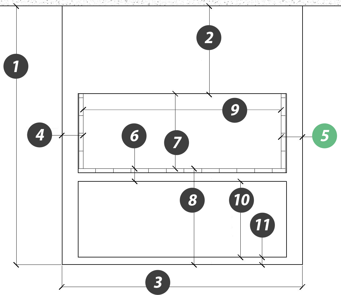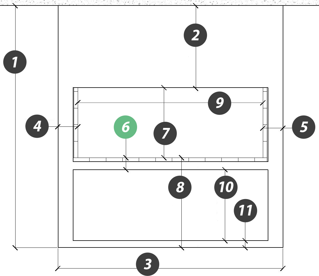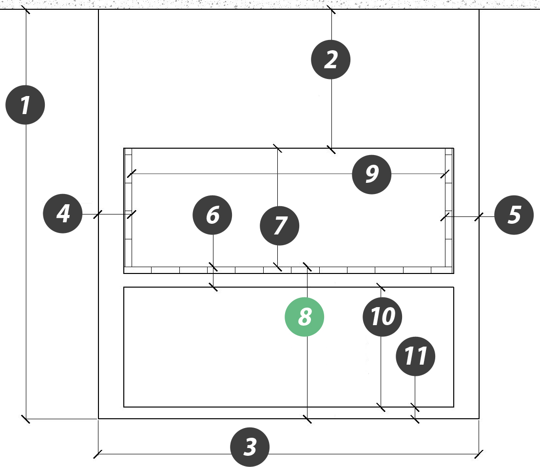 Altura Zócalo: desde el piso al borde superior de la banquina/zócalo (medida en milímetros)