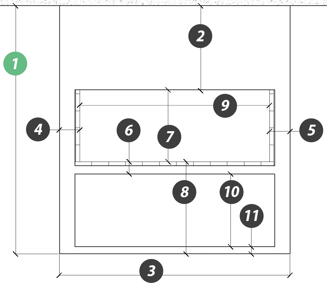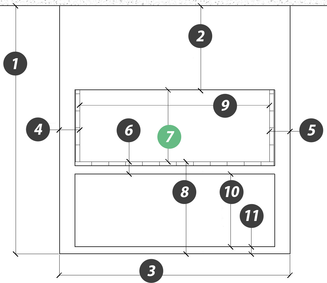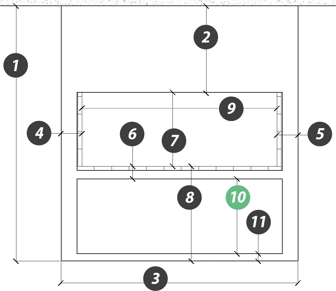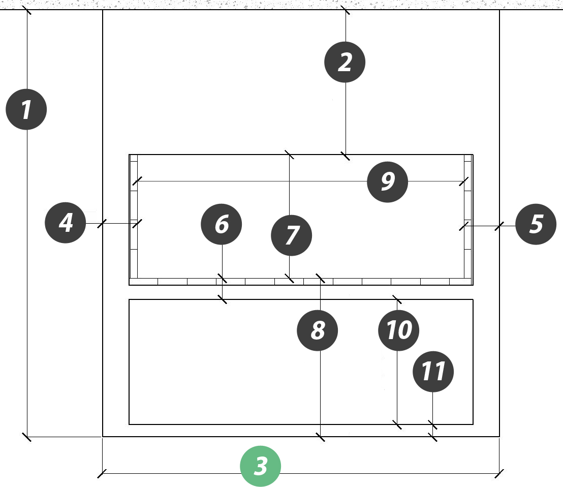 Altura Zócalo: desde el piso al borde superior de la banquina/zócalo (medida en milímetros)