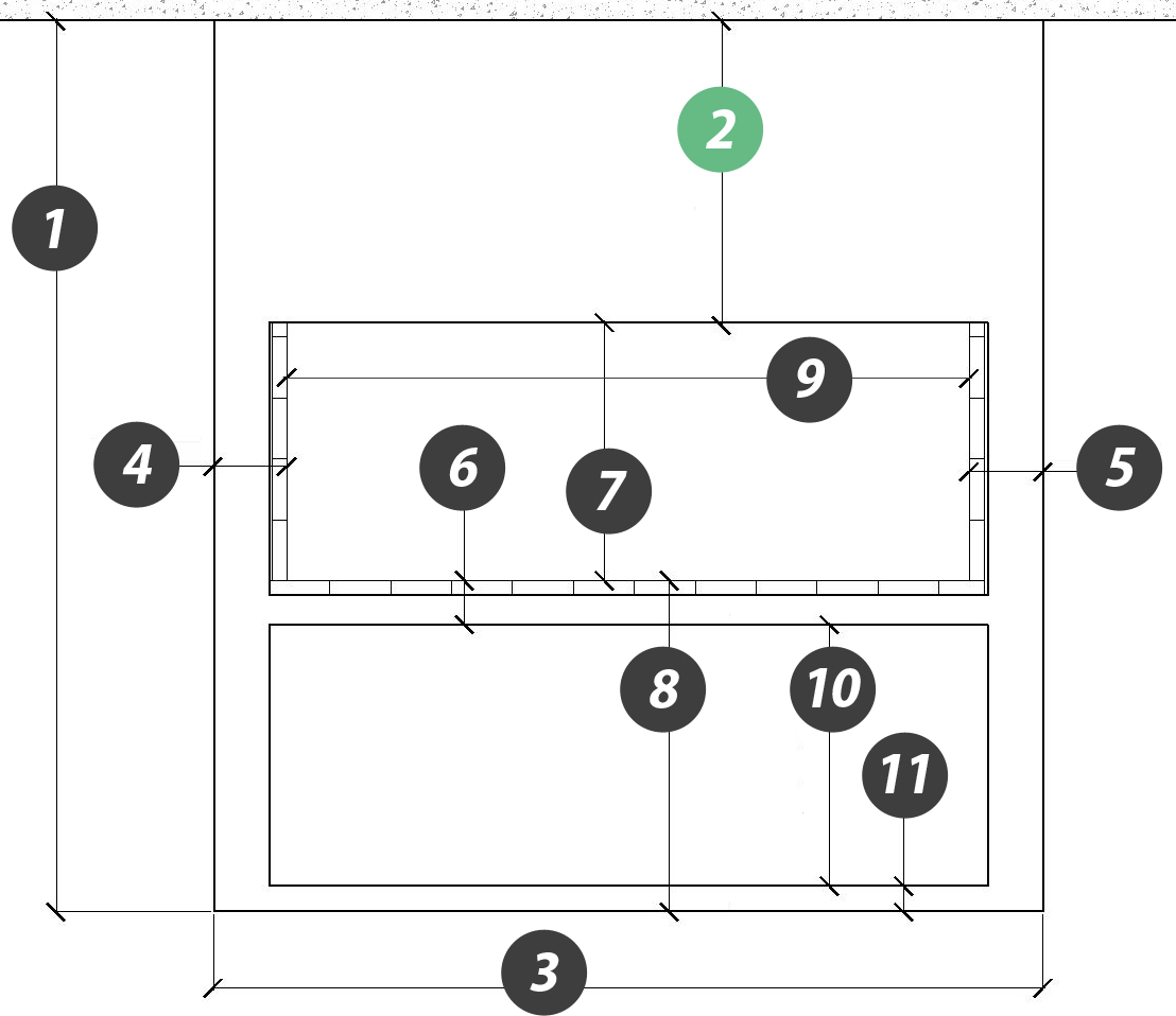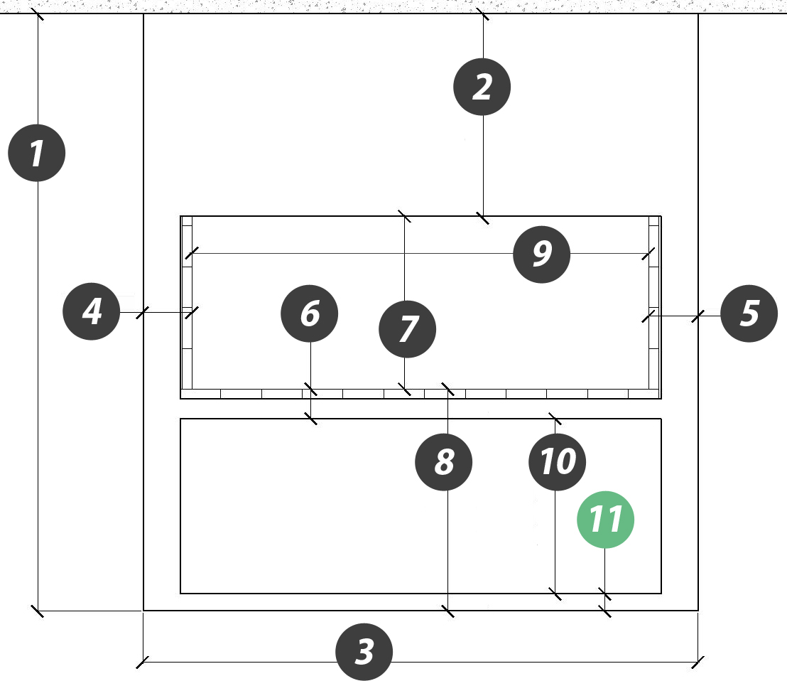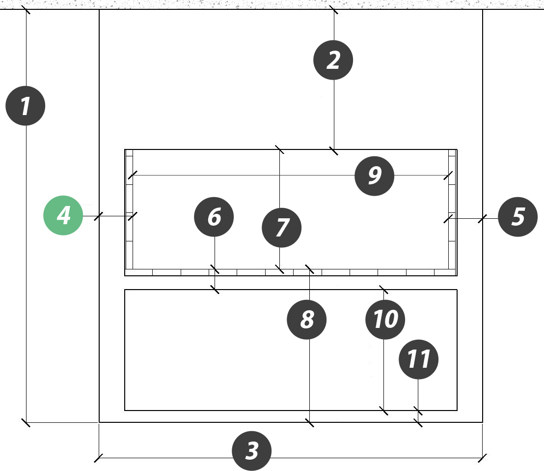 Altura de Espacio de Almacenamiento Inferior: desde el piso de la banquina/zócalo a la parte inferior de la losa del parrillero (medida en milímetros)